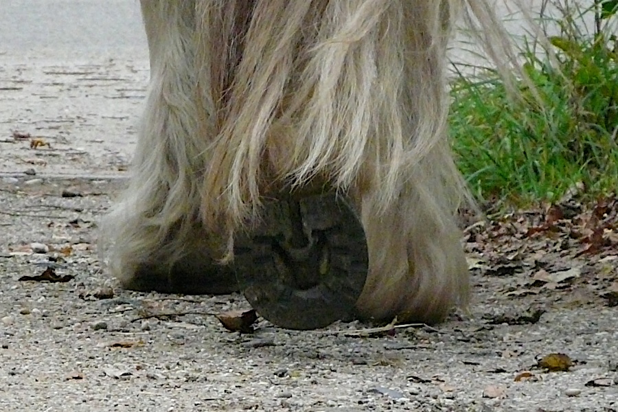 Zwar würde ich immer einer Umstellung mit Hufschuhen und Polster bevorzugen, da man so in sehr kurzen Intervallen die Hufe korrigieren kann, manchmal ist dies jedoch nicht möglich und der EasyShoe ist eine gesunde Alternative.