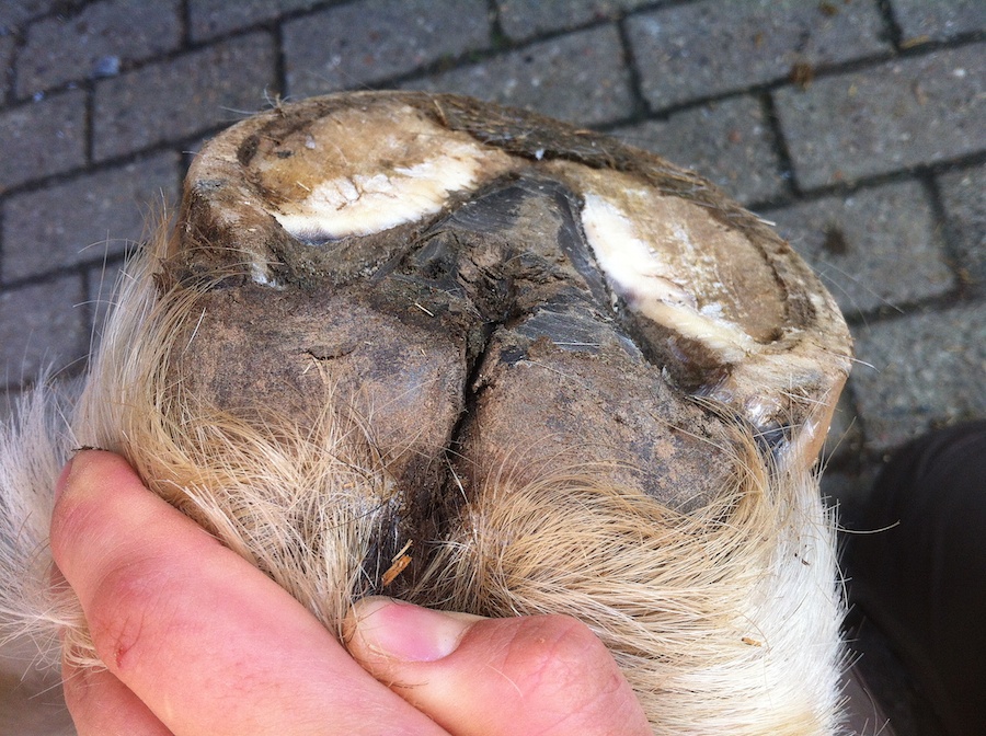Der Pilz jedoch zeigt sich durch ein anderes Bild am Huf.